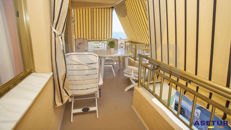 Apartamento un 5º de 110m² en 2ª linea de playa completamente amueblado. 3 habitaciones con armarios empotrados, 1 baño y un aseo reformado con ducha, cocina con galería vistas a montaña, instalaciones deportivas y mar. Salón comedor con terraza vistas a montaña, piscina y mar. Toldos y aire acondicionado con bomba de calor. Instalaciones deportivas de piscina, pista de tenis y basquet. Toda la comunidad está rodeada de jardines y zonas verdes. Incluye plaza de parking y trastero. Se vende completamente amueblado.